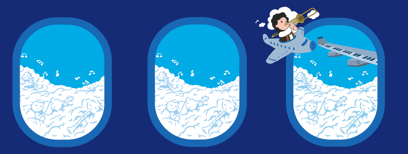 跟著我飛上天空,讓音樂也一同飛揚吧!
